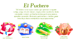 “El Puchero es un espacio ameno que queremos compartir contigo, amigo del arte culinario. Aquí podrás consultar tus dudas con nuestro cocinero, probar las recetas que te proponemos, aprender con nuestro diccionario gastronómico, e incluso ganar lotes de productos enviándonos tus propias recetas.”