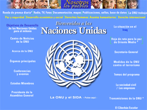 Portal de la Organización de las Naciones Unidas, donde se pueden consultar todos los informes que emite este ente internacional; también consultar la agenda de reuniones y consultar cuestiones de derecho internacional. Ofrece enlaces a todas las organizaciones que dependen de ella.